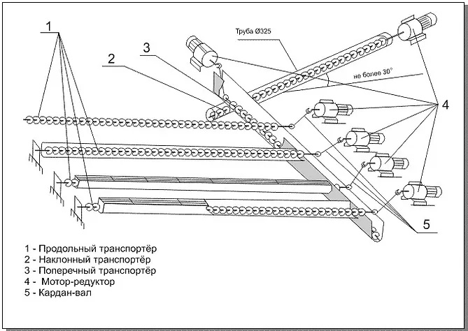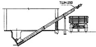 шнековый, наклонный скребковый транспортёр, поршневой и т. д.). В